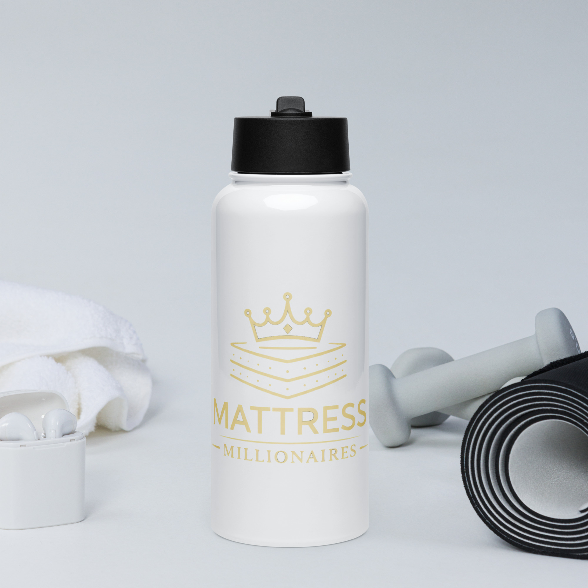 Mattress Millionaires Logo | Stainless steel water bottle with a straw lid
